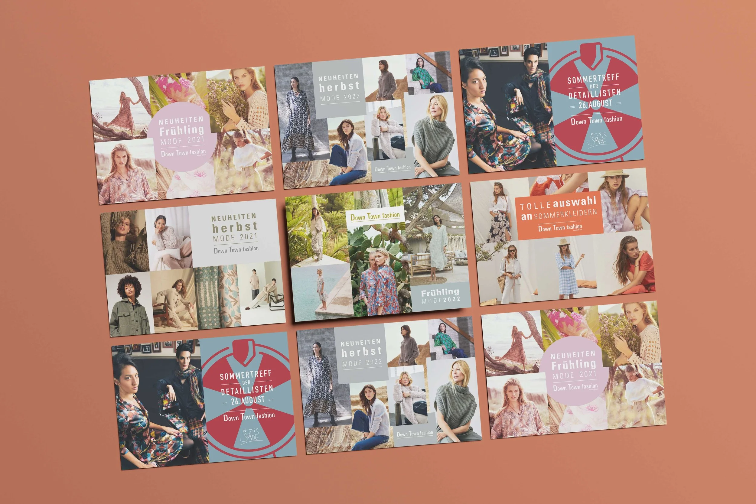 Für die Modeboutique Down Town Fashion in Stäfa gestalteten wir bei New Media & Design den gesamten visuellen Auftritt – von klassischen Printmedien bis zur digitalen Kommunikation. Pro Saison (Frühling/Sommer & Herbst/Winter) entstanden stimmige Kampagnen zur Präsentation der aktuellen Kollektionen.