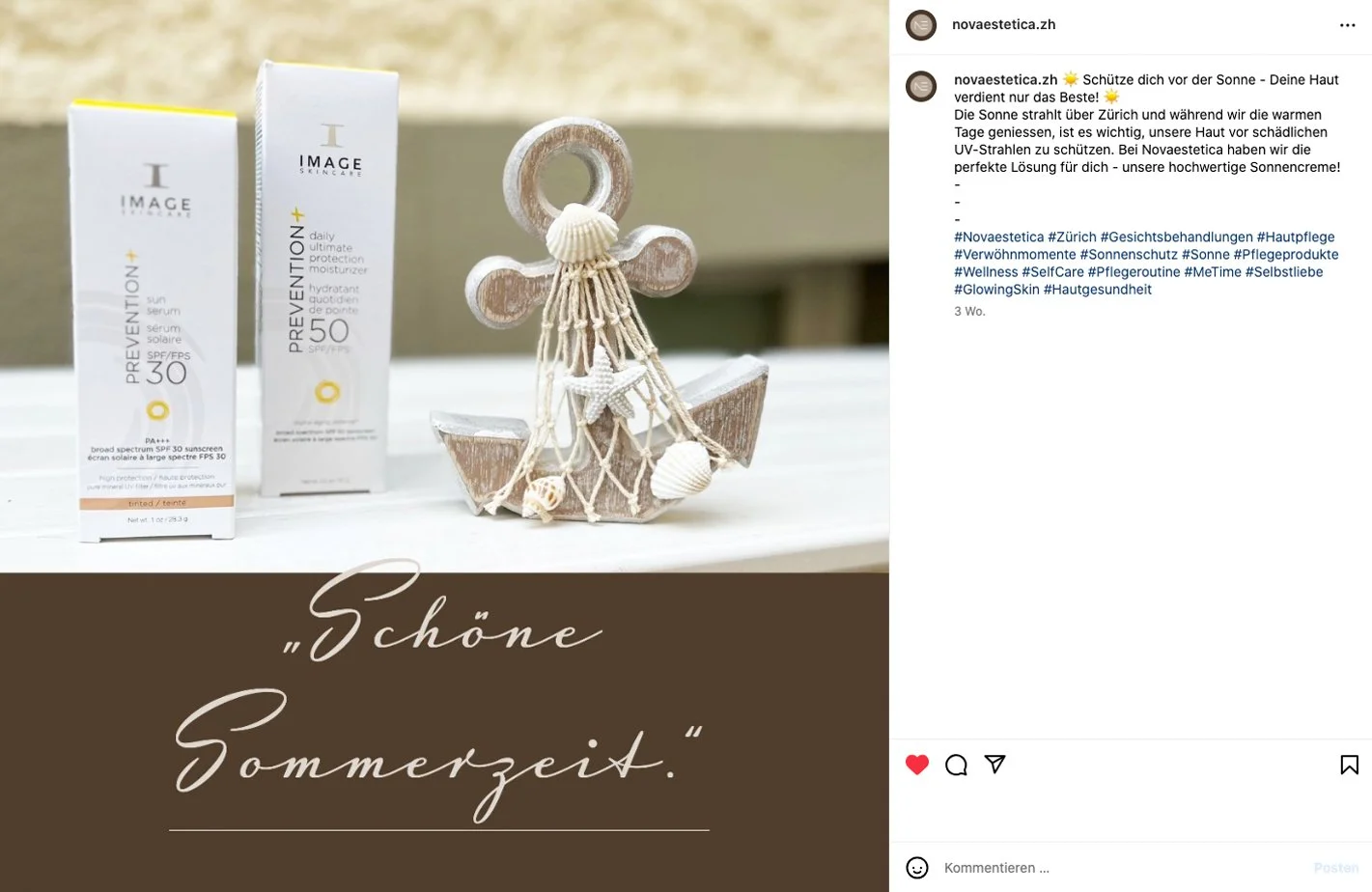 Für das Zürcher Beauty-Studio Novaestetica entwickelte ich bei New Media & Design ein stimmiges Social-Media-Konzept und begleitete dessen Umsetzung. Ziel war es, die hochwertige Ästhetik der Marke in den digitalen Auftritt zu übertragen und eine visuelle Linie zu schaffen, die sowohl Expertise als auch Wohlbefinden ausstrahlt.